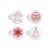 Here is an easy way to decorate four different designs of Christmas cookies, cupcakes, and coffee beverages. This set features a snowflake, a Christmas tree, a snowman, and a Christmas ornament.